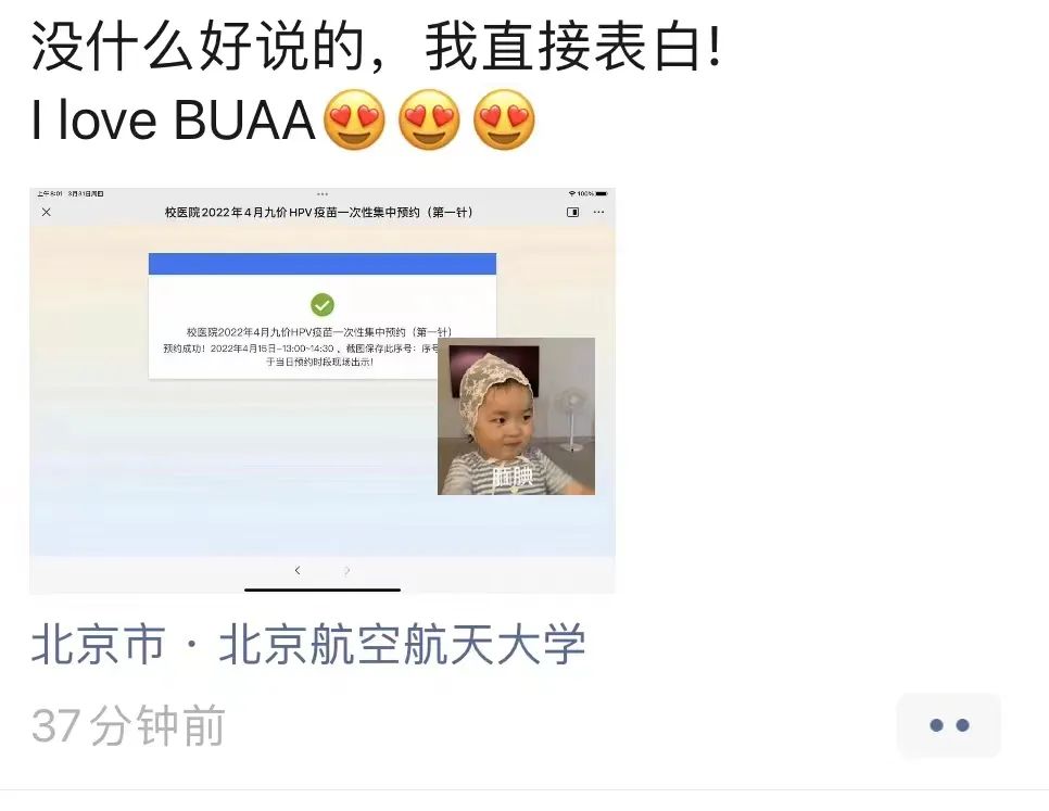 “感谢校医院为我们提供这次集中接种的机会,很不容易,感觉特别难得和感动”、“没什么好说的,我直接表白北航!”、“现场流程很合理、很顺畅,辛苦工作人员们”,接种工作得到师生的赞扬。