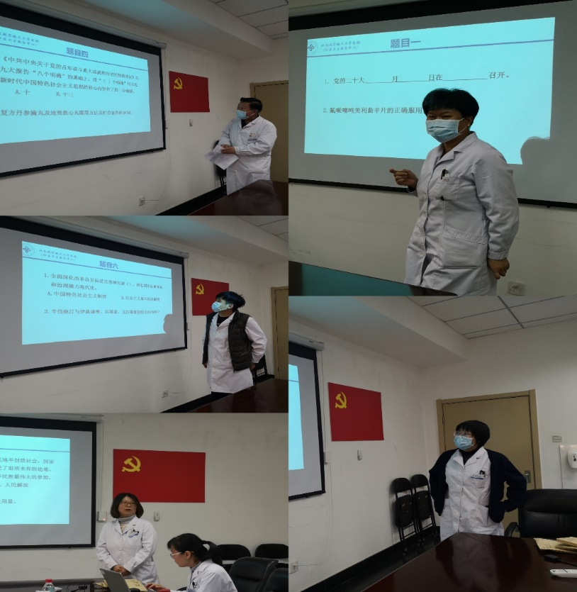 “党史知识和专业知识竞答”环节的题目涵盖了党史知识、西成药用药知识等多方面内容。在竞答过程中充分调动了药剂科全体同志参与的积极性,大家踊跃答题,现场精彩迭出,答题者展现出的坚实理论基础获得阵阵掌声。