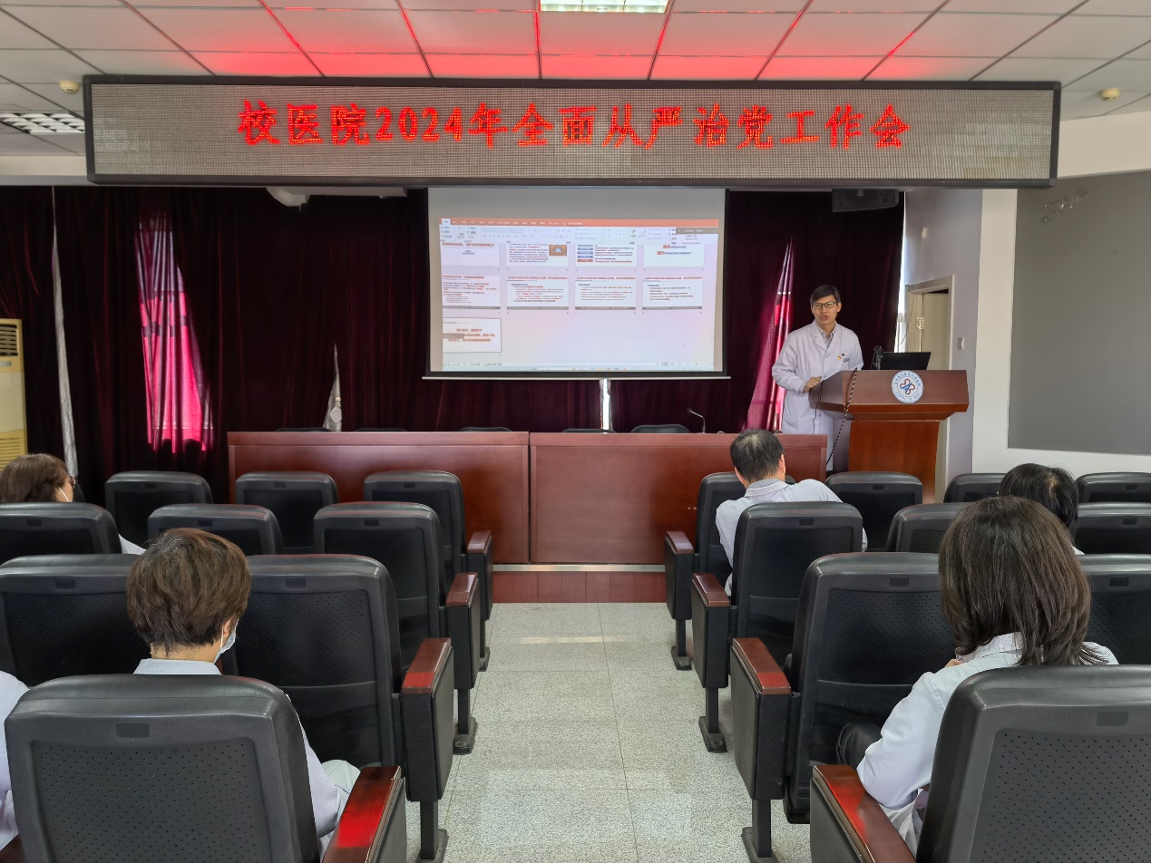党总支书记梁恩和传达学校2024年度全面从严治党工作会议精神。他指出,医院党员干部和职工要深入学习贯彻习近平总书记关于党的自我革命的重要思想,坚定拥护“两个确立”、坚决做到“两个维护”,贯彻落实医院2024年全面从严治党各项工作任务,把推进全面从严治党与落实年度重点工作结合起来,全力为医院高质量发展提供坚强保障。