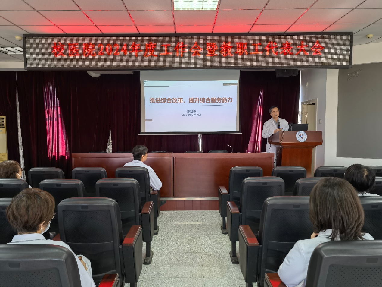 2024年3月7日,校医院召开2024年度工作会暨职工代表大会和全面从严治党工作会,全体职工参加会议。