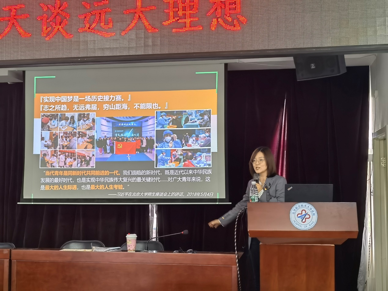 付丽莎老师讲述中国航天事业的发展历程和中国航天员的拼搏故事,一代代航天人立志空天报国,无私奉献,接续奋斗,生动阐释了“远大理想”之“远大”的深刻含义。付老师还带领大家回顾了中国共产党革命、建设、改革的百年奋斗历程,她动情地讲到“实现中国梦是一场历史接力赛,复兴之路的接力棒,现在交到了大家的手上”,激励大家在新时代下树立远大理想,承担起实现中华民族伟大复兴的历史使命。
