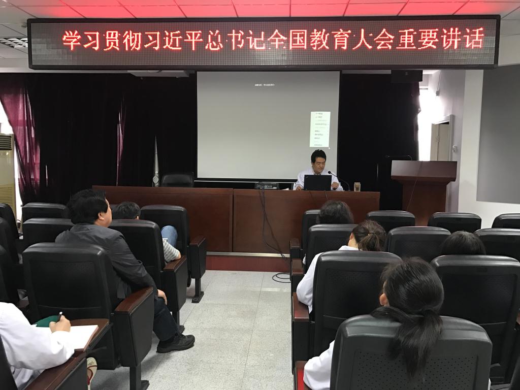 2018年9月27日,校医院第五届党总支召开全体党员大会深入学习贯彻《习近平总书记在全国教育大会重要讲话》精神。经过充分学习,校医院党员们明确了服务育人、服务师生健康的重大职责,为师生健康保驾护航。