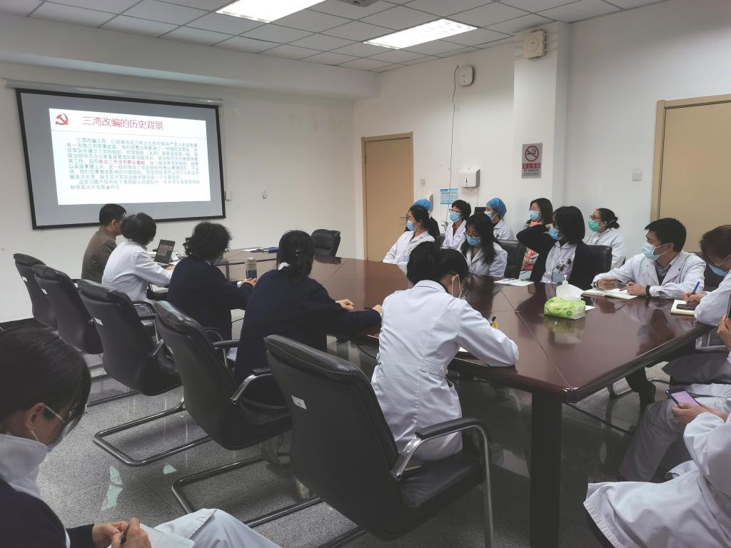 张院长首先带领大家学习三湾改编的历史背景和重大成果,将“支部建在连上”保证了党对军队的绝对领导,为党支部在基层发挥领导核心作用、联系群众和党员的纽带作用奠定基础。随后学习《中国共产党章程》全文,特别指出基层党支部的基本任务和担负直接教育、管理、监督党员和组织、宣传、凝聚、服务群众职责。