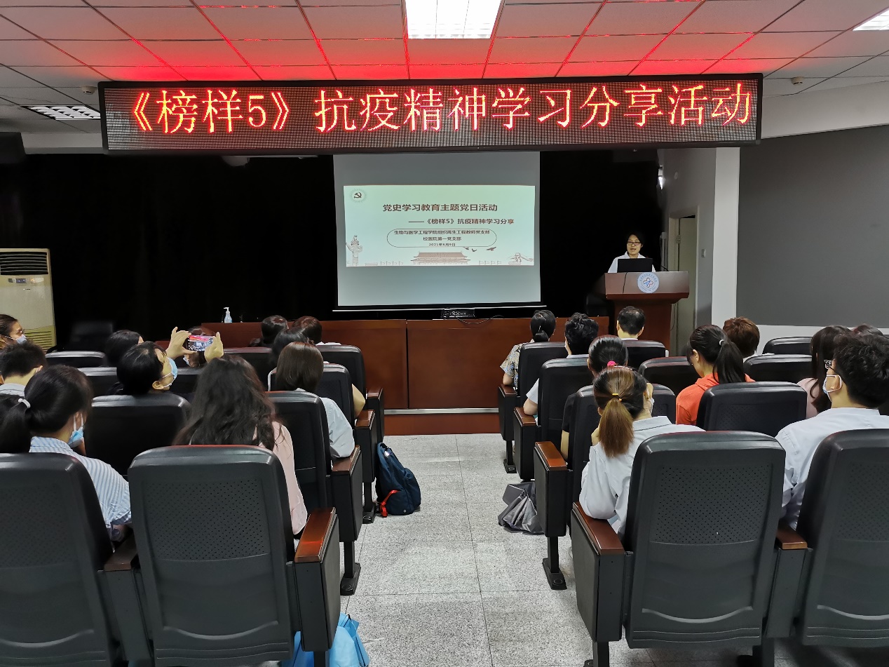 为庆祝中国共产党成立100周年,扎实推进党史学习教育,深入学习习近平总书记关于中国共产党人精神谱系的重要论述,弘扬伟大抗疫精神,促进合作交流,6月9日下午,校医院第一党支部与生物与医学工程学院组织再生工程教师党支部开展“党史学习主题教育主题党日活动——《榜样5》抗疫精神学习和分享”共建活动。校医院党总支书记高静、院长张新华、生物与医学工程学院党委书记韩慧瑜、副书记侯丹丹参加活动。