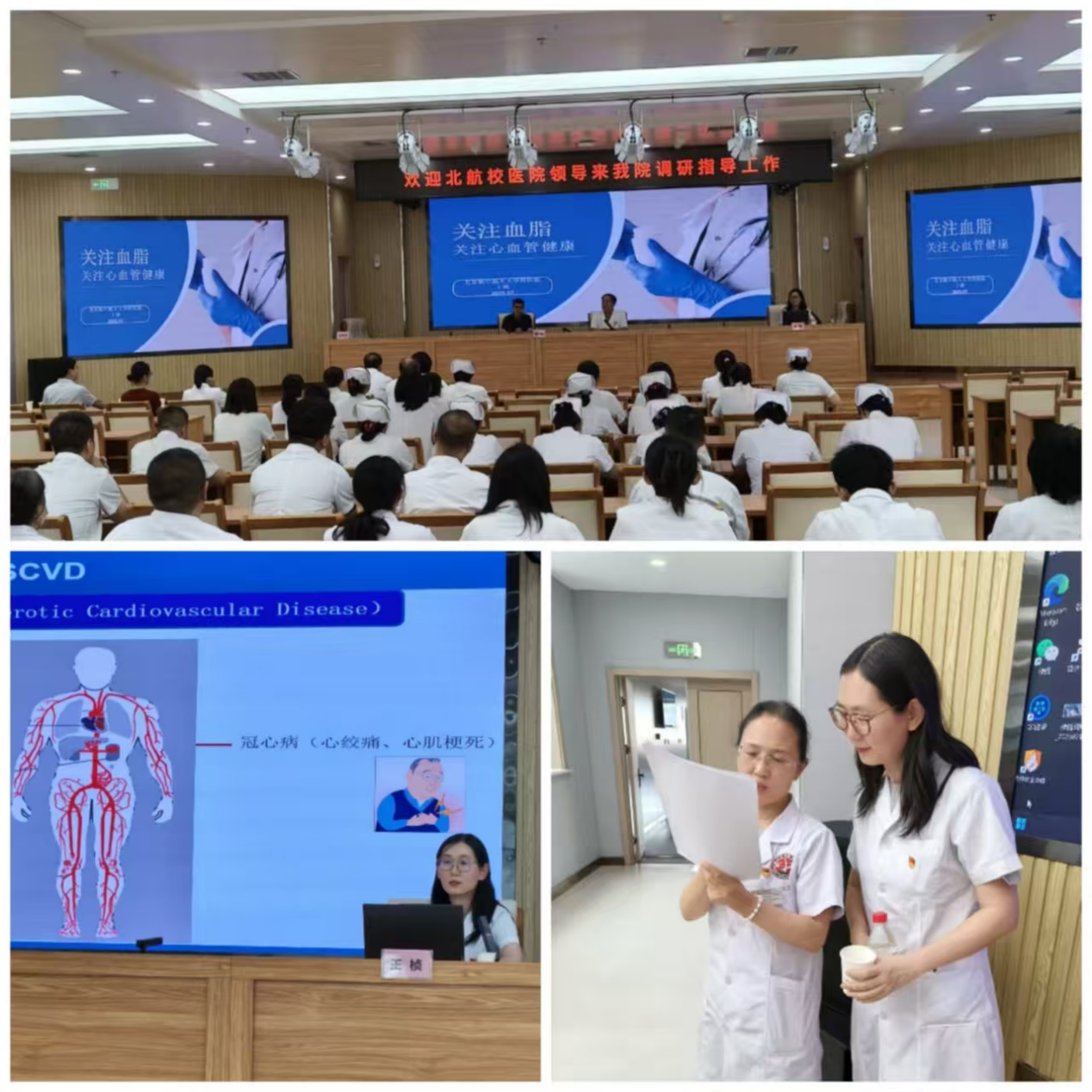 此外,由党总支书记梁恩和带队前往中阳县人民医院,王桢医生围绕《关注血脂,关注心血管健康》主题,与县人民医院医护人员展开座谈交流及案例探讨,分享诊疗经验,中阳县人民医院党委书记郭建斌、院长高林芳在交流中分别指出,此次活动有效建立双方医院之间的学习交流机制,助力提升常见心血管疾病诊疗能力。