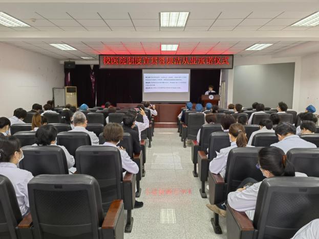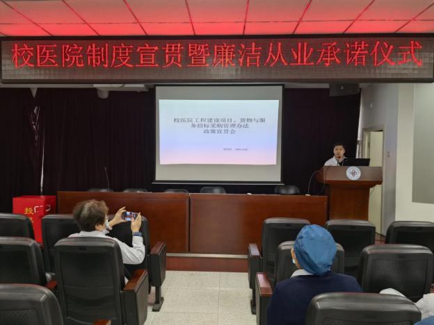 为扎实落实巡察整改工作,加强医院廉政风险防控体系建设,2022年3月11日,校医院开展全院制度宣贯暨廉洁从业承诺仪式。